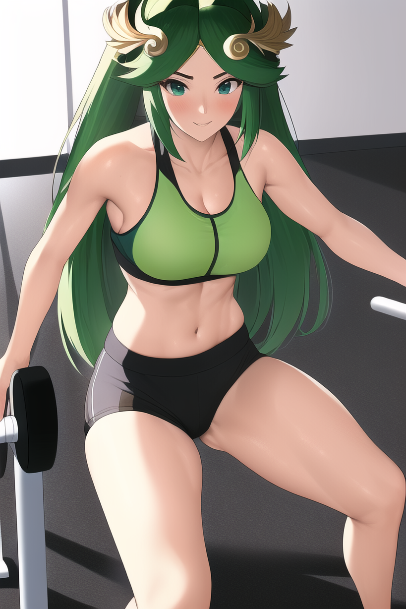 417108 NintendoHentai Nintendo – 1girl alluring athletic female dumbbell female abs fit female green eyes green by calum1998