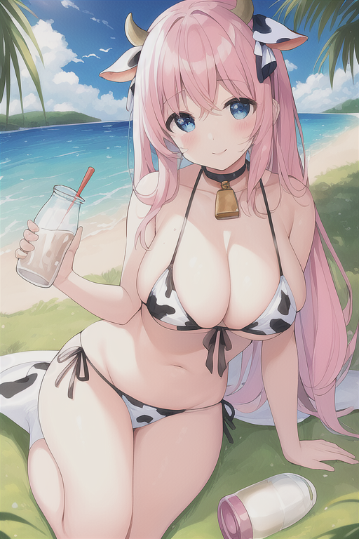 Busty Hentai – big breasts bikini cow girl pink hair | 1004019