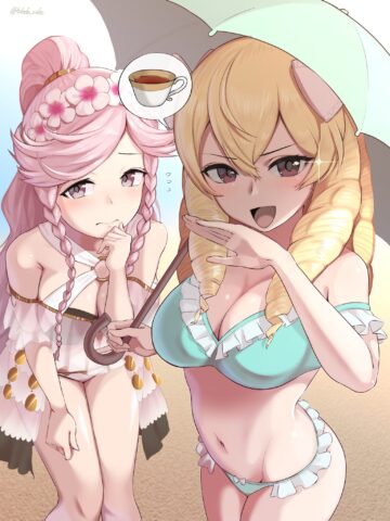 414105 Blonde HairHentai Blonde – 1girl 2 girls alluring alternate costume big breasts bikini blade ride blonde by calum1998