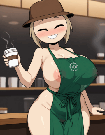 414105 NipplesHentai Nipples – ai generated apron big breasts blush closed eyes coffee cuntboy femboy green by charlan1234