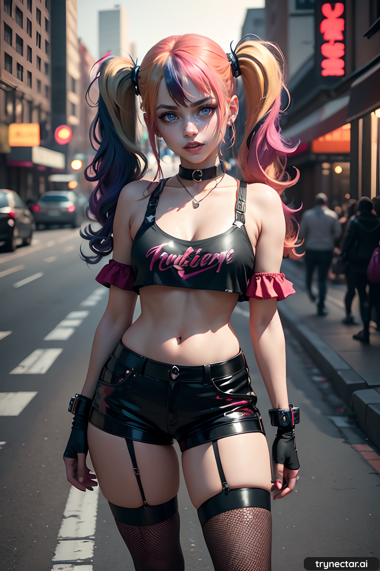 409100 StockingsHentai Stockings – 1girl blue eyes cleavage crop top shorts stockings twintail | 1076497 by Lianne022