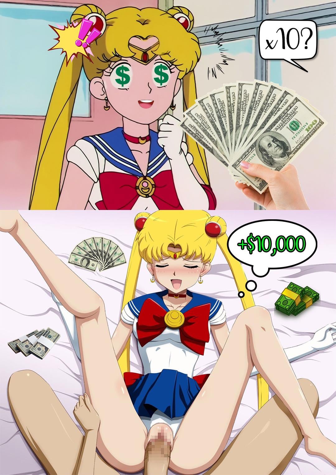 451142 HentaiSailor Moon receives an offer that she cannot say no to. She earns $10k in an all-night marathon thanks to her money magnet pussy. by PrensEndimion
