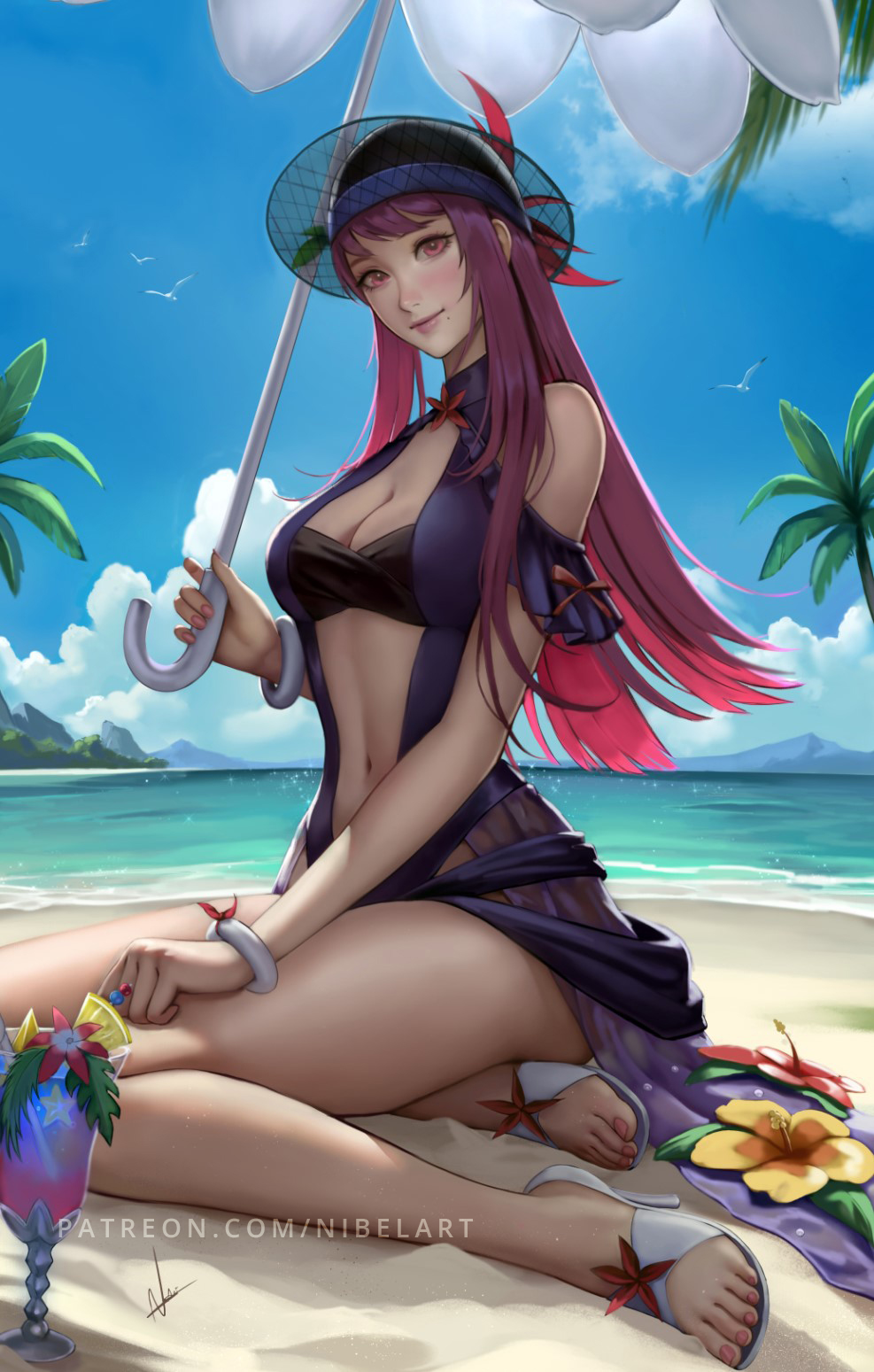 412103 NintendoHentai Nintendo – 1girl 1girl alluring alternate costume beach blue one-piece swimsuit blue by calum1998