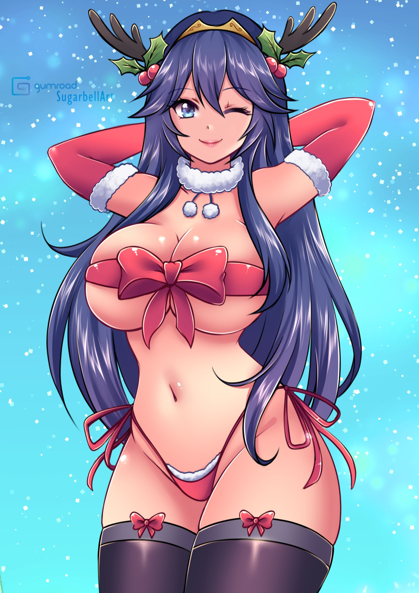 415106 NintendoHentai Nintendo – 1girl alternate breast size antlers arms behind head bare thighs big breasts by calum1998