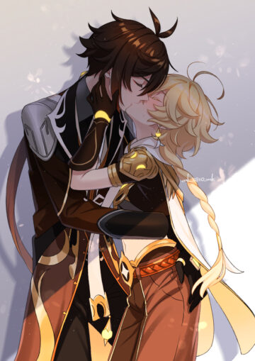 412103 Blonde HairHentai Blonde – 2boys aether (genshin impact) ahoge ar (rikuesuto) black gloves black pants by Belver