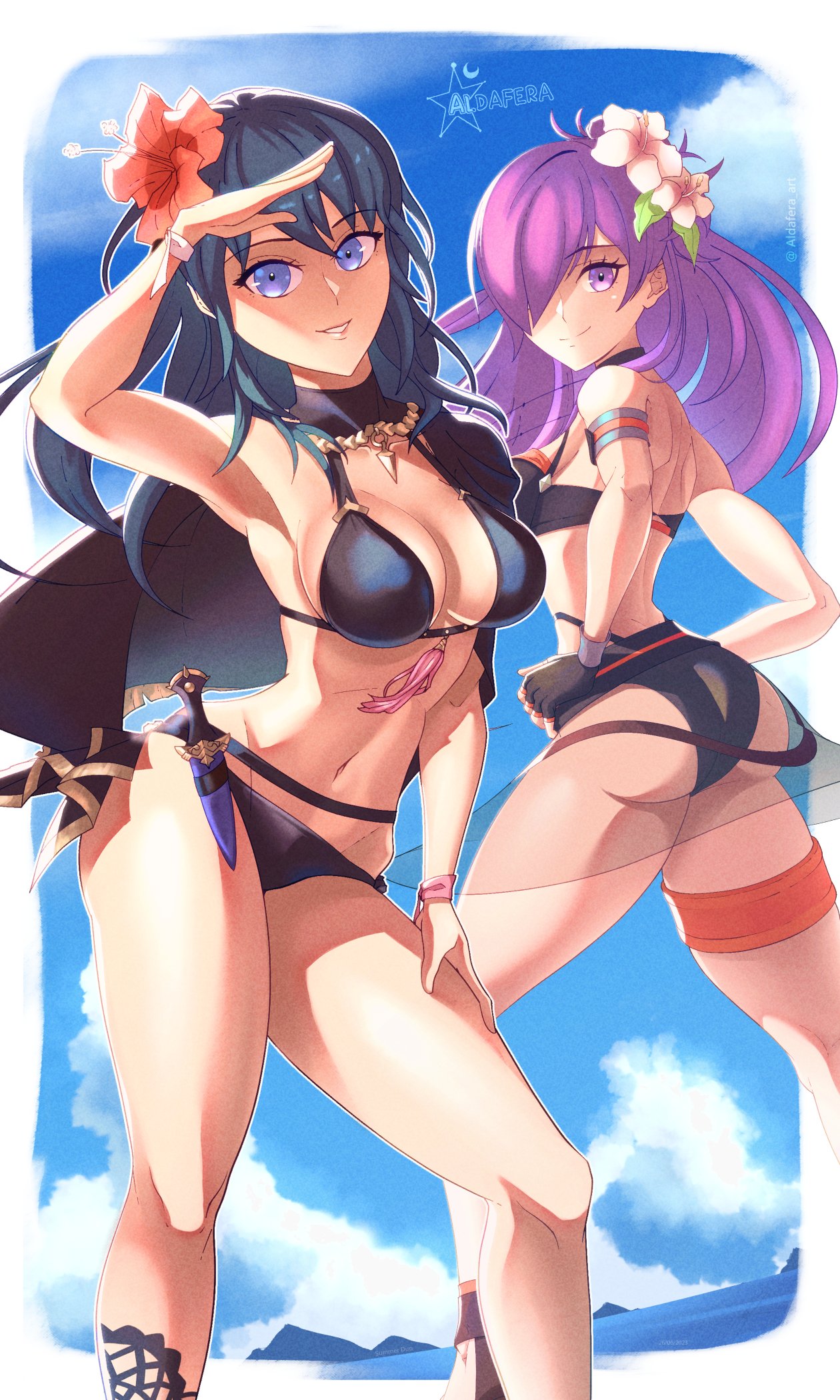 410101 AssAss Hentai – 2 girls aldafera alluring alternate costume aqua eyes ass big breasts bikini by calum1998