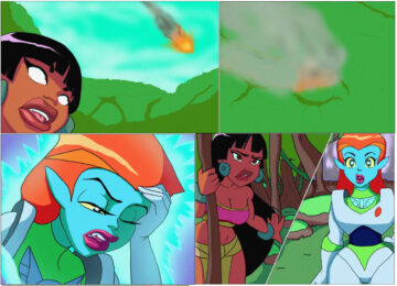 414105 DisneyHentai Pictures – 1girl 2 girls alien alien/human alien girl big breasts biting another’s lip by charles17