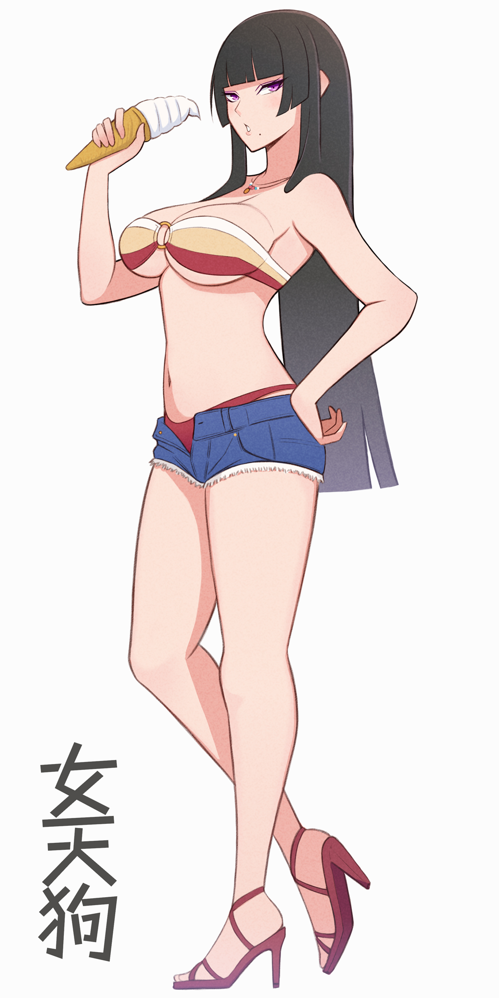 413104 BustyBusty Hentai – 1girl alluring bare legs big breasts bikini black and blue hair dead or alive by calum1998