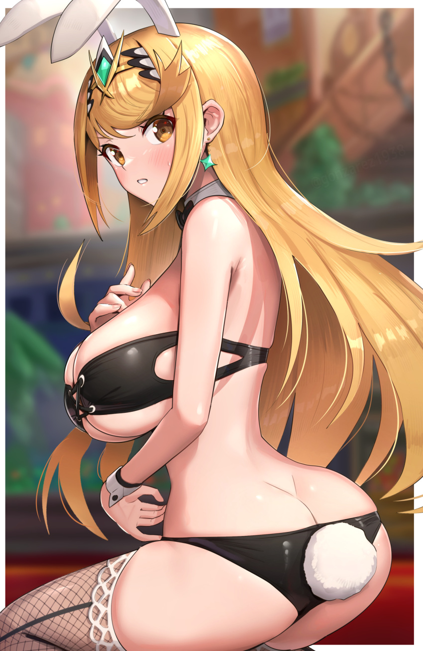 414105 Blonde HairHentai Blonde – 2 bodysuits 2 girls alice (nikke) animal ear headphones ass back bikini black by BIGKAT