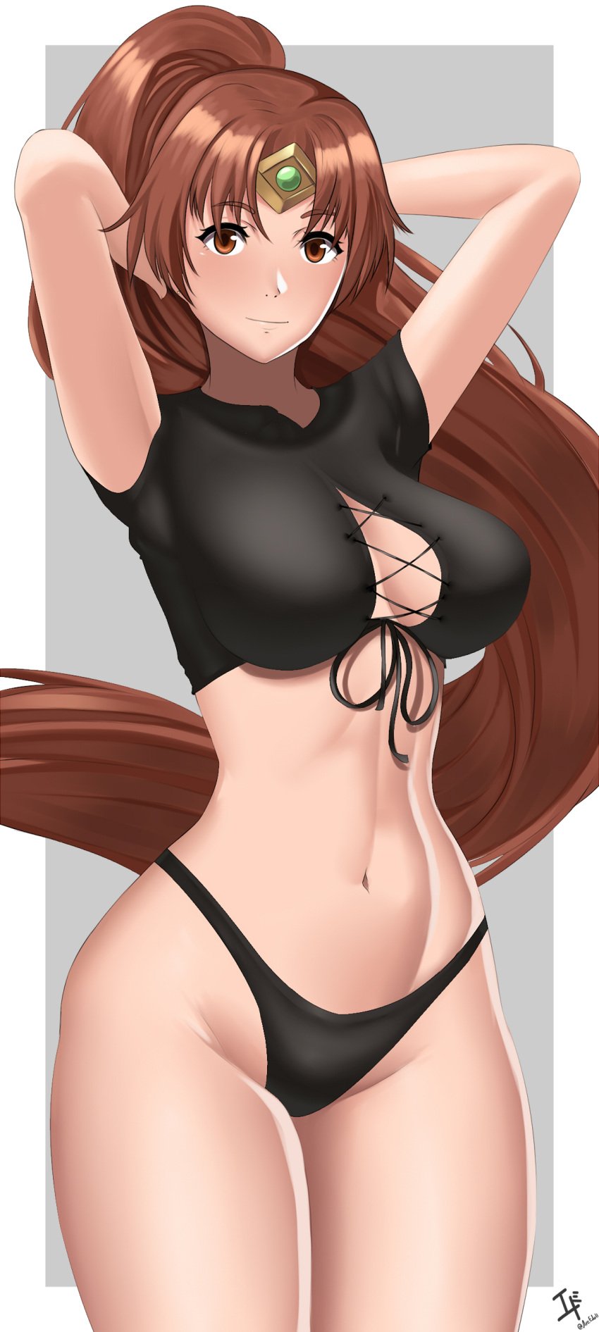40798 BustyBusty Hentai – 1girl abs adjusting hair alluring arcedo athletic female bare legs bare by calum1998