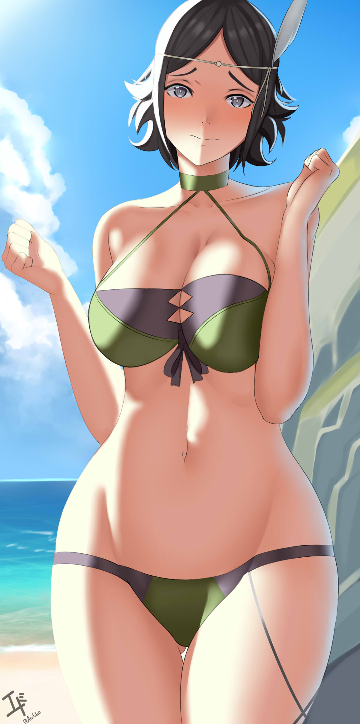 414105 BustyBusty Hentai – 1girl 1girl 1girl alluring arcedo bare arms bare legs bare shoulders beach big by calum1998