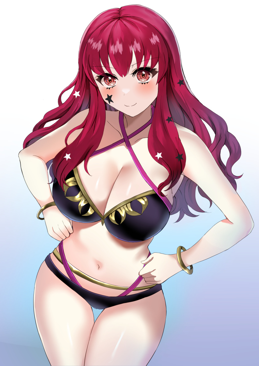 409100 BustyBusty Hentai – 1girl armlet bangs bare legs bare shoulders big breasts bikini black hair by Belver