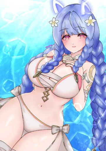 409100 BustyBusty Hentai – 1girl 1girl alluring artist name big breasts bikini blue hair blunt bangs by calum1998