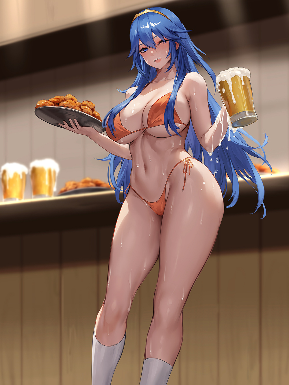 416107 NintendoHentai Nintendo – 1girl 1girl 1girl :d absurd res alluring alternate costume beer mug blue eyes by calum1998