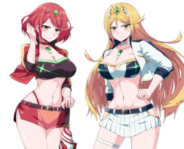 412103 NintendoHentai Nintendo – 1girl 2 girls alluring belt beltskirt big breasts blonde hair choker core by calum1998