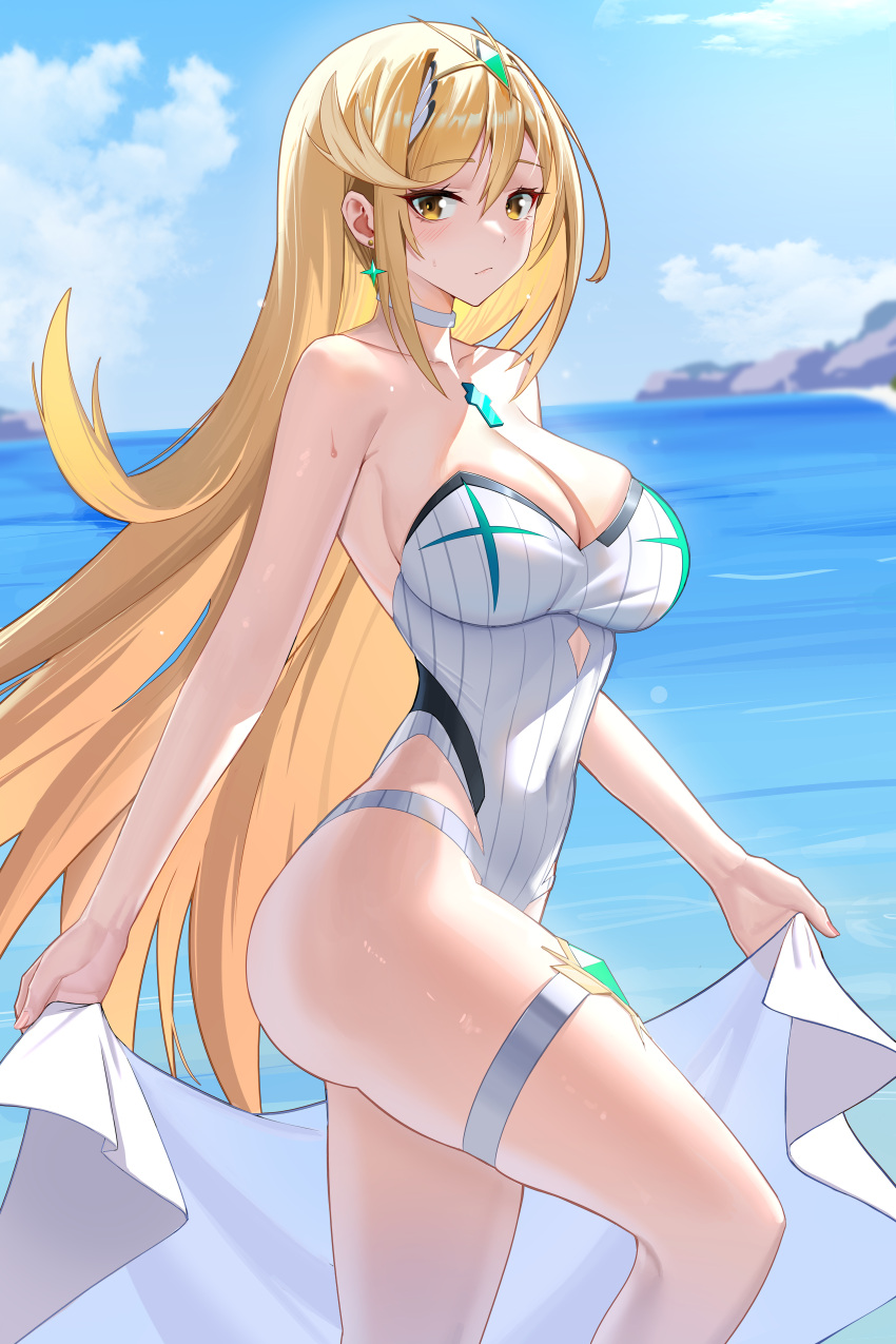417108 NintendoHentai Nintendo – 1girl alluring bare legs besser big breasts bikini blonde hair cleavage mythra by calum1998