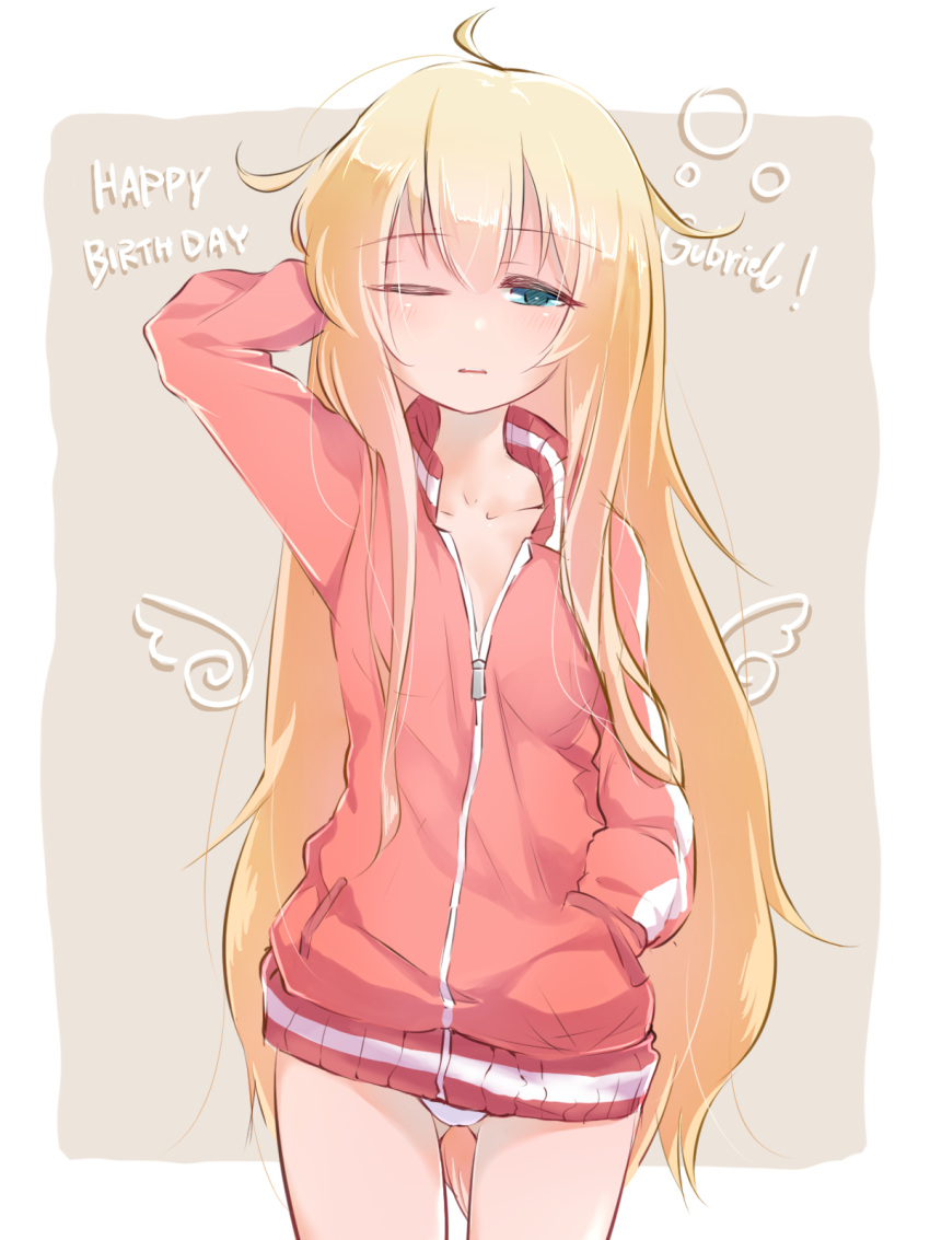 414105 Blonde HairHentai Blonde – 1girl ahoge aqua eyes arm behind head birthday blonde hair commentary gabriel by Bruhchungus123