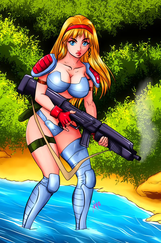 412103 Blonde HairHentai Blonde – 1girl alluring armor shoulderpads big breasts blaster blonde hair blue eyes by calum1998
