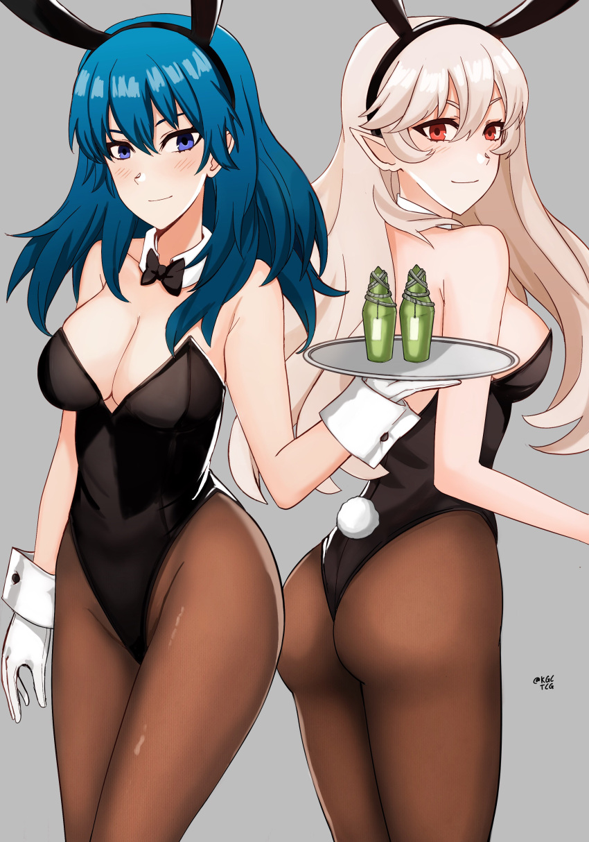 411102 BoobsHentai Boobs – 2 girls alluring alternate costume ass back view blue eyes blue hair bottle by calum1998