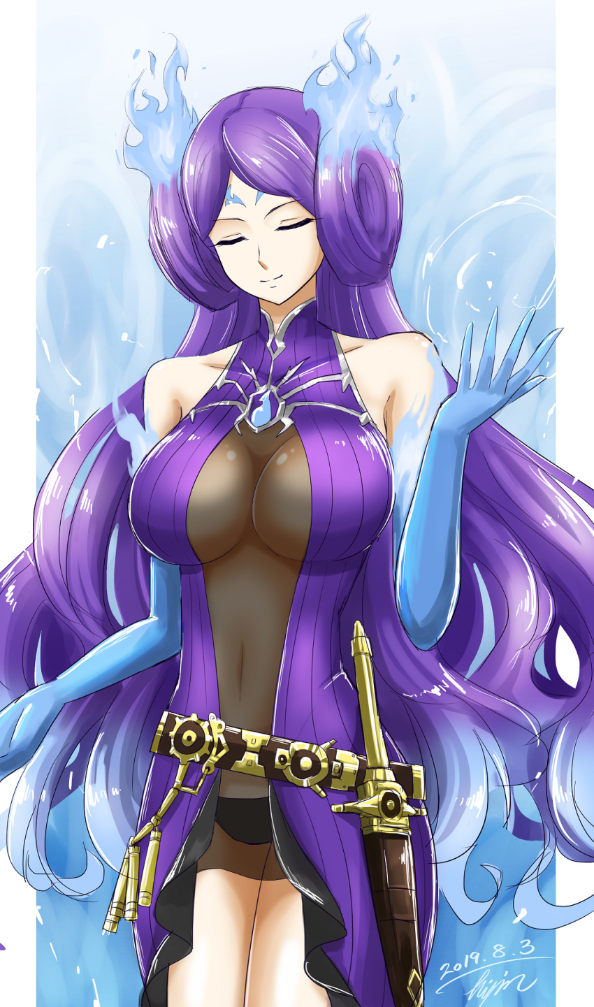 412103 BustyBusty Hentai – 1girl alluring big breasts blue fire brighid brighid (xenoblade) closed eyes by calum1998