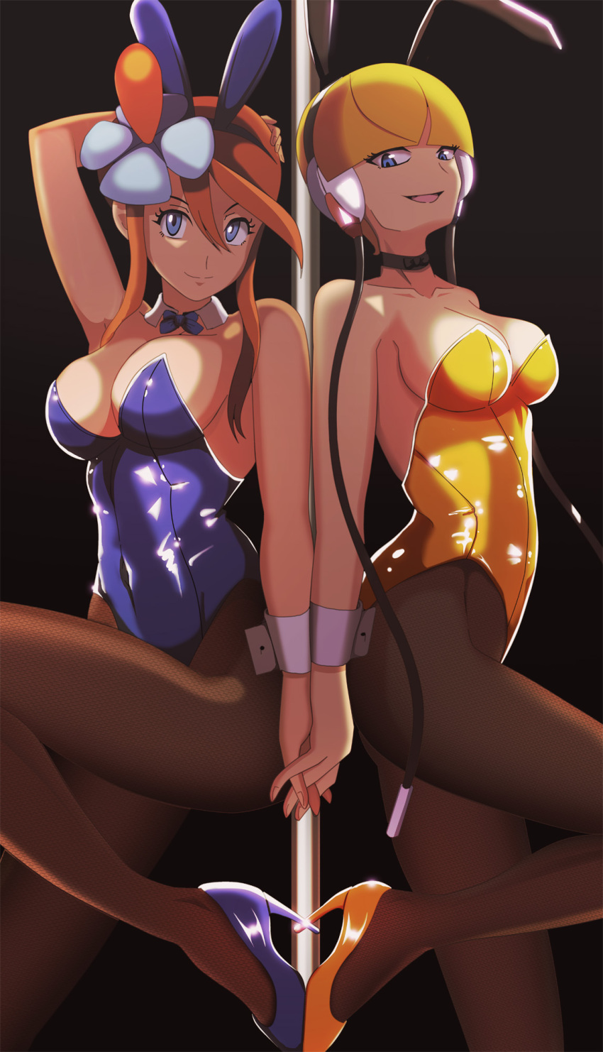 411102 NintendoHentai Nintendo – 1girl 1girl blonde hair breasts bunnysuit core crystal female only latex by calum1998
