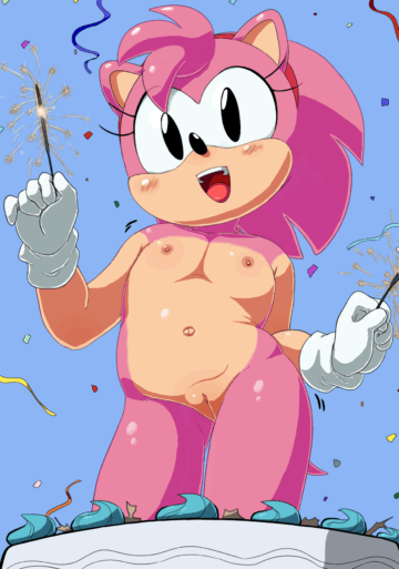 416107 NipplesHentai Nipples – 1girl amy rose black eyes blue background blush cake classic amy rose cleft of by Babah
