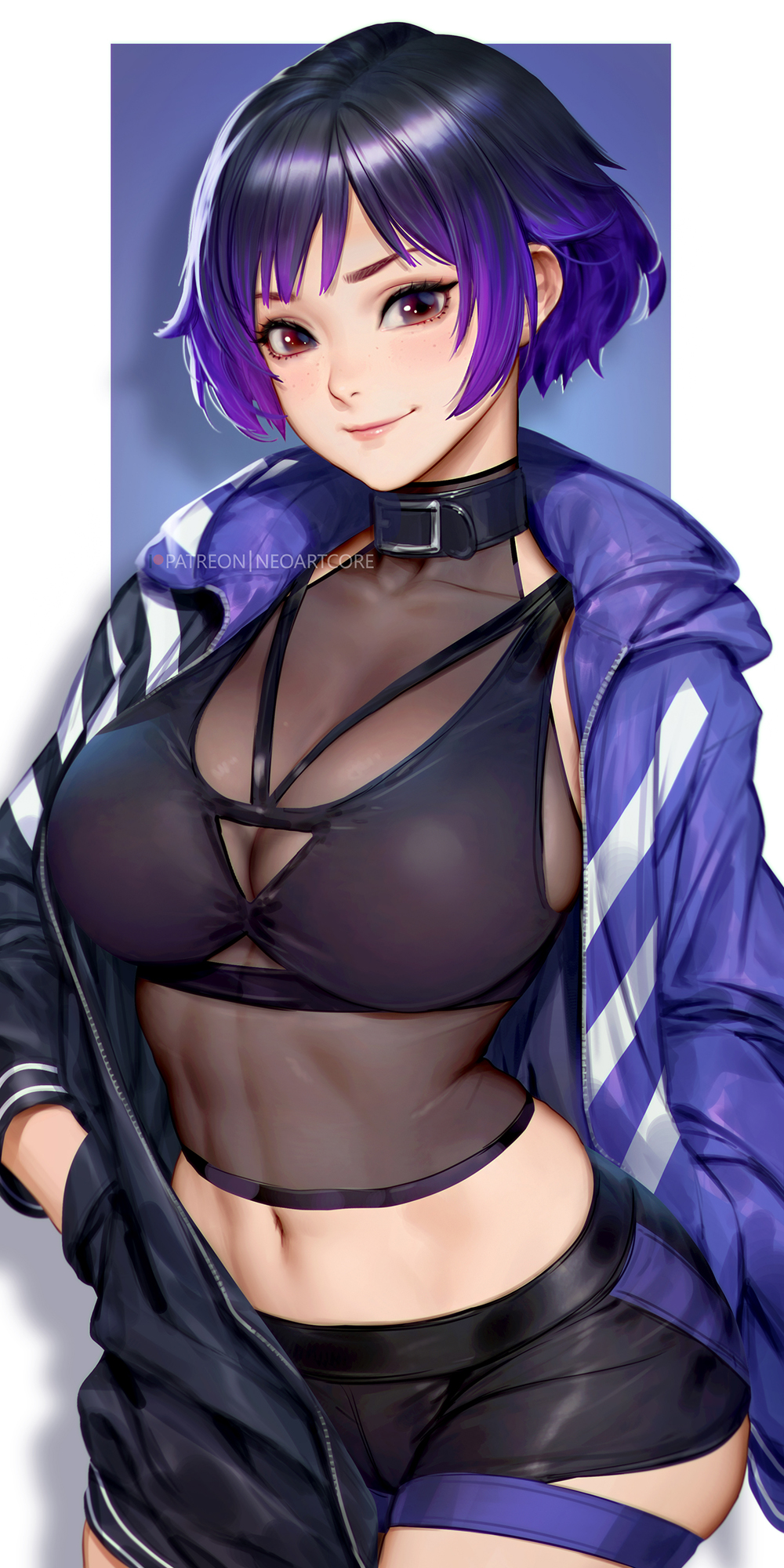 412103 BustyBusty Hentai – 1girl 6cw8 alluring beach big breasts black and blue hair blue eyes cleavage by calum1998