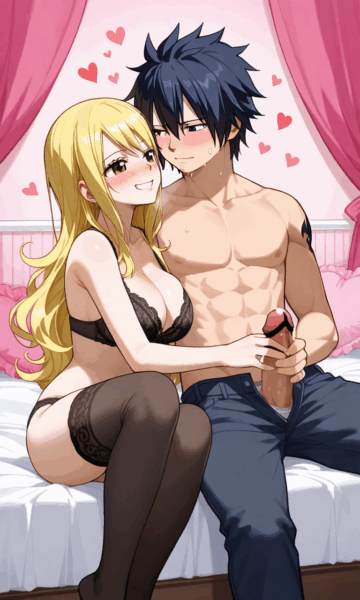 412103 Blonde HairHentai Blonde – black bra black hair black lingerie panties blonde hair curly hair erection by Nickyjones9