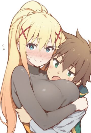 414105 BoobsHentai Boobs – 1boy 1girl ai generated blonde hair blush breasts cuddling darkness (konosuba) by UserBox