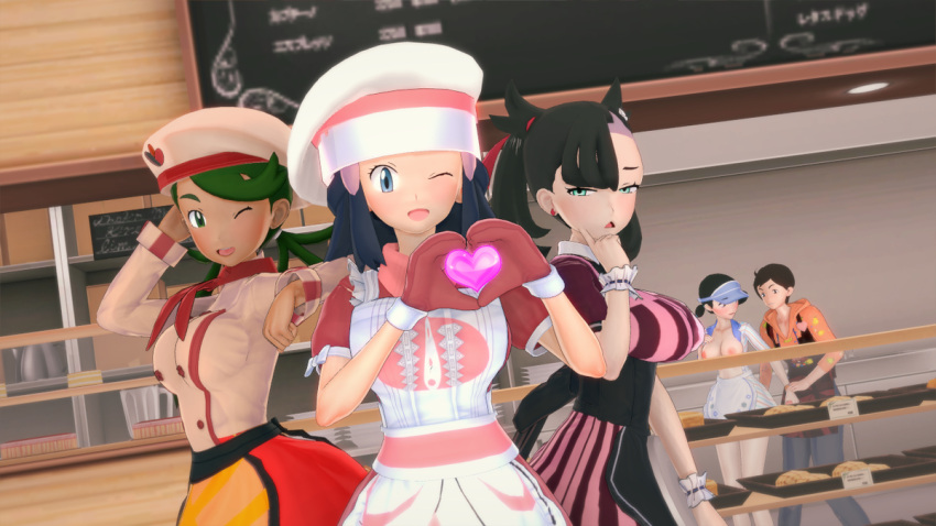414105 NipplesHentai Nipples – 1boy 4girls black hair breasts brown hair dawn green hair mao (pokemon) mary by masaruyuuri
