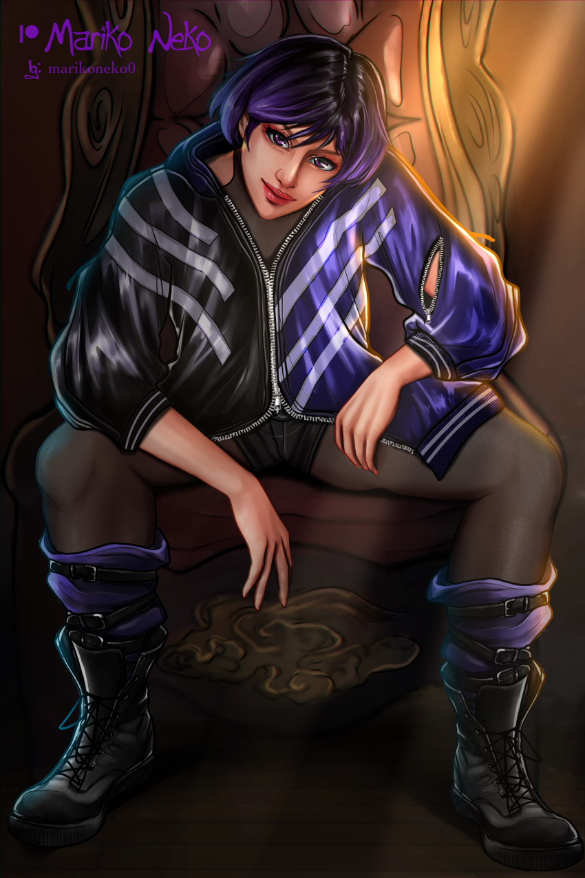 412103 BustyBusty Hentai – 1girl alluring big breasts black and purple hair clothed detailed background by calum1998