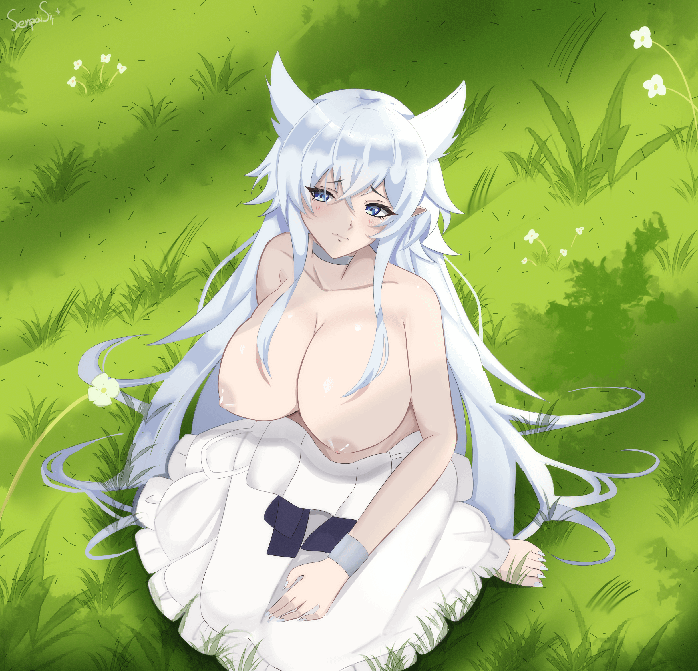 415106 NipplesHentai Nipples – arms up big breasts blue eyes fenrys hands up long hair looking at viewer lv2 by nekom14