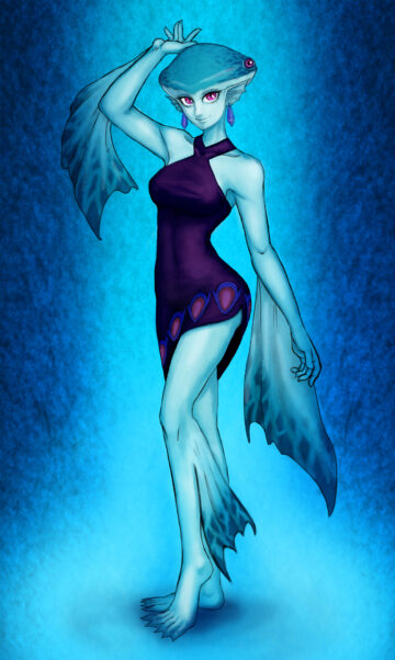 413104 NintendoHentai Nintendo – 1girl alluring bekio blue skin collarbone colored skin dress earrings fins by calum1998