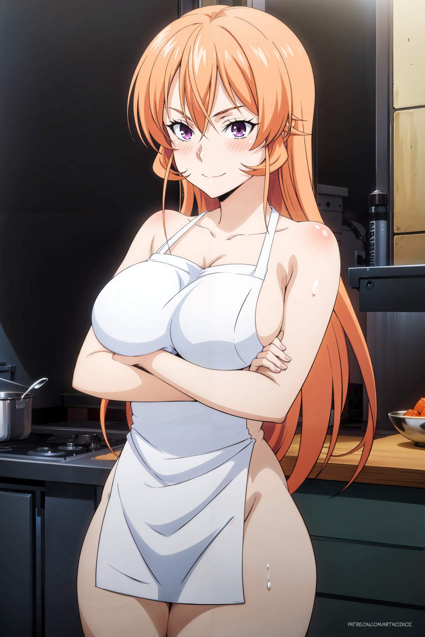 414105 BustyBusty Hentai – 1girl alluring apron only big breasts kitchen koikoi (artist) mischievous grin by calum1998
