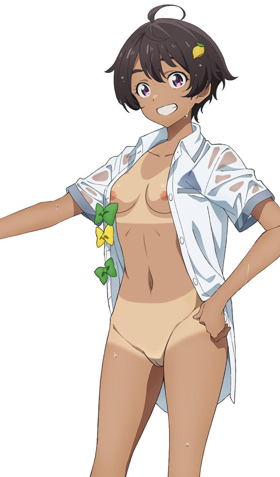415106 NipplesHentai Nipples – black hair dark skin grin looking at viewer make heroine ga oo sugiru! medium by nekom14
