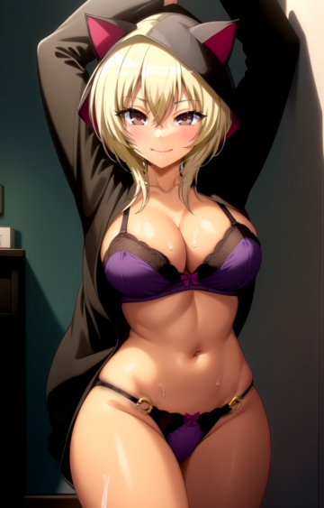 412103 BustyBusty Hentai – 1girl 1girl ai generated animal hood arms up big breasts black jacket blonde by Girllover215