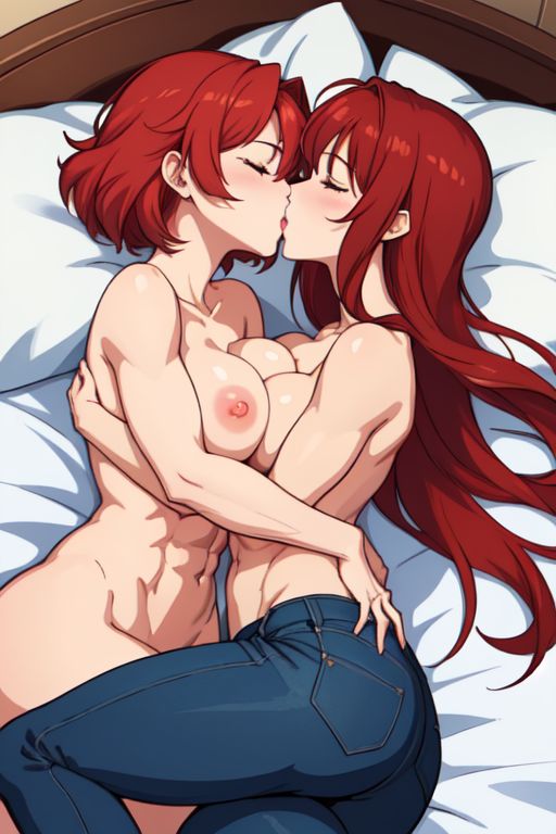 40899 BoobsHentai Boobs – 2 girls abs ai generated armpits blue eyes breasts jeans kissing nipples by Nuggeto