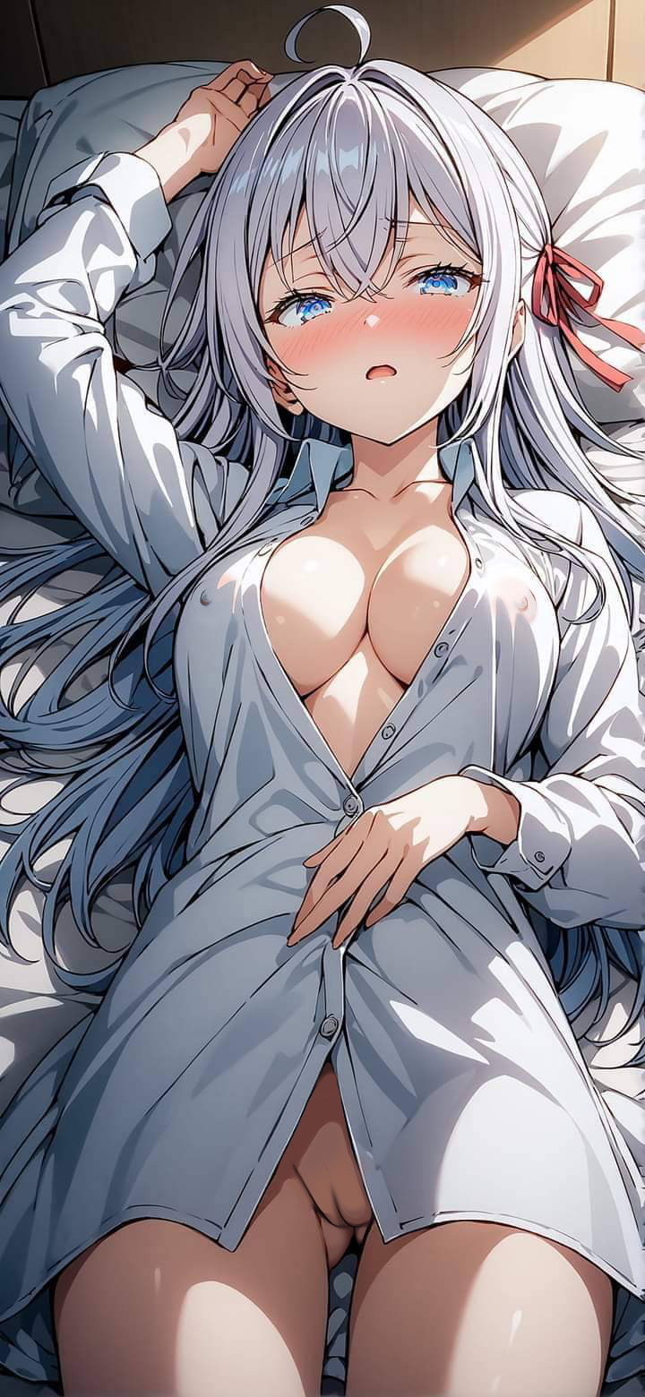 411102 PussyHentai Pussy – alisa mikhailovna kujou bed blue eyes grey hair long hair looking at viewer by nekom14