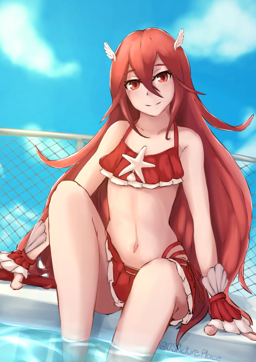414105 NintendoHentai Nintendo – 1girl 1girl alluring bare shoulders bikini bikini top lift blue sky clothes by calum1998