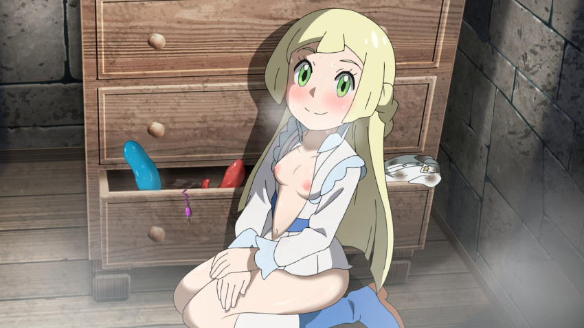414105 Blonde HairHentai Blonde – blonde hair blush breasts green eyes lillie (pokemon) open shirt pink nipples by bugg3rman
