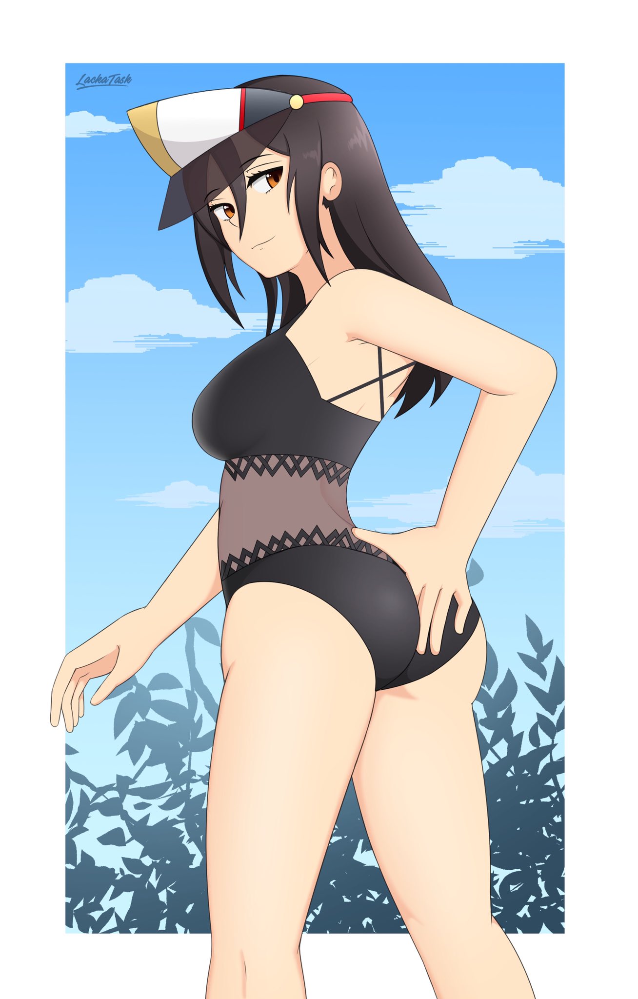 414105 NintendoHentai Nintendo – 1girl alluring bare legs bikini black hair blue sky brown eyes morag ladair by calum1998