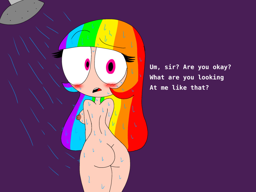 409100 AssAss Hentai – ass backboob blush confused look dialogue nervous nude rainbow hair rainbow by JulianMarrero