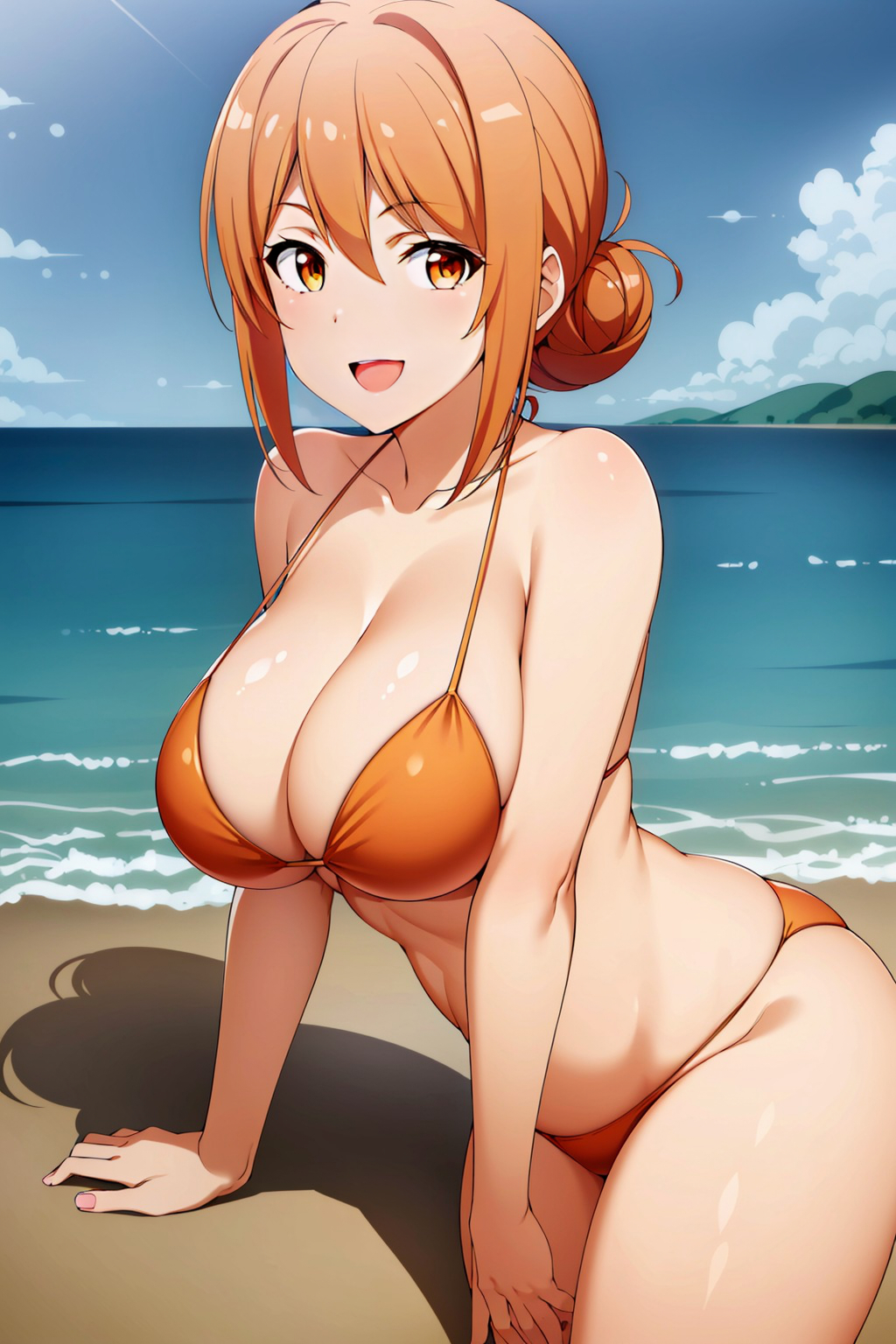 412103 BustyBusty Hentai – 1girl alluring bare legs beach big breasts blue sky nosoylander ocean posing by calum1998