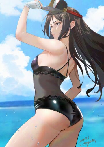 40899 AssAss Hentai – 1girl absurd res alluring ass black hair black one-piece bikini fingerless by calum1998