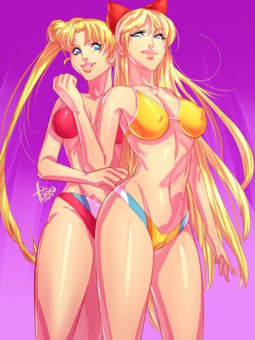 412103 BustyBusty Hentai – 1girl 2 girls alluring big breasts bikini bishoujo senshi sailor moon blonde by calum1998