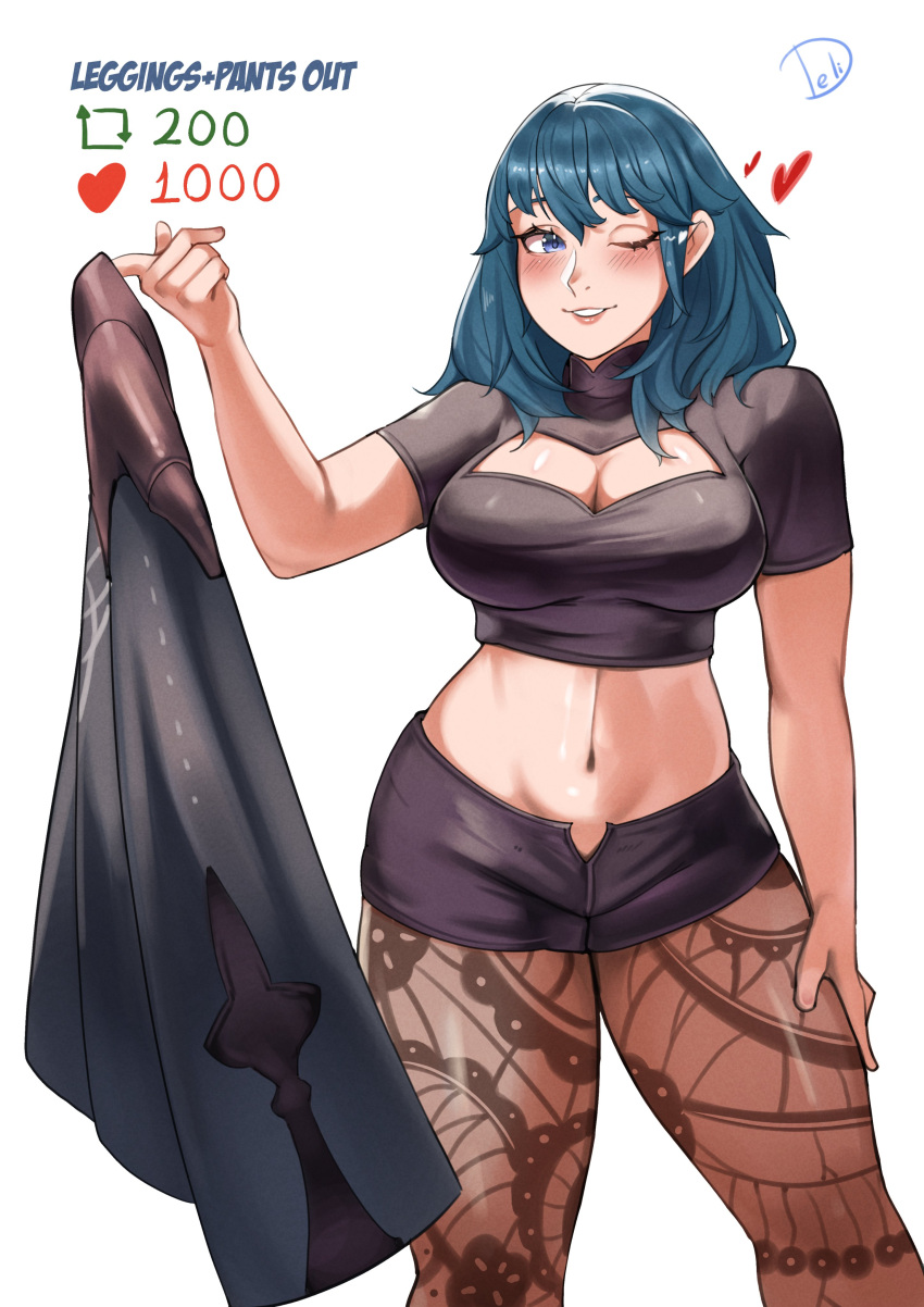 417108 NintendoHentai Nintendo – 1girl absurd res alluring big breasts black shirt black shorts blue eyes blush by calum1998