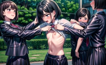 414105 NipplesHentai Nipples – 3 girls ai generated blush breasts breasts out bully bullying clothes stolen by euf-enf