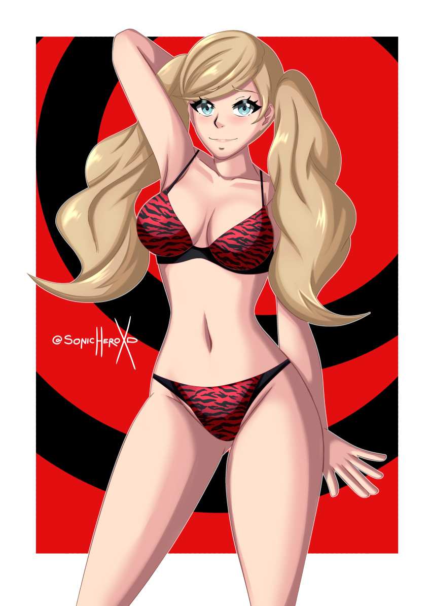 417108 StockingsHentai Stockings – 1girl 1girl 1girl alluring ann takamaki aqua eyes bare shoulders belly blonde by calum1998