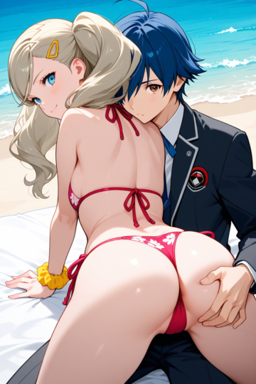 40899 AssAss Hentai – 1b 1boy 1girl ai generated ann takamaki ass bikini bottom blonde hair blue by makotoxyukari
