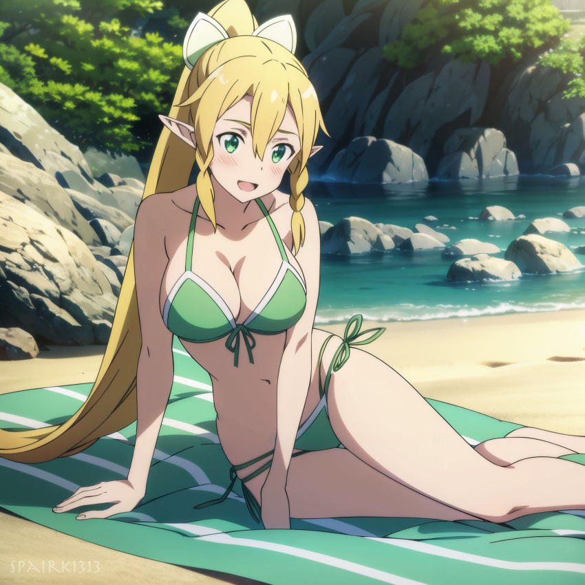 410101 Blonde HairHentai Blonde – 1girl alluring bare legs beach beach towel big breasts bikini blonde hair by calum1998